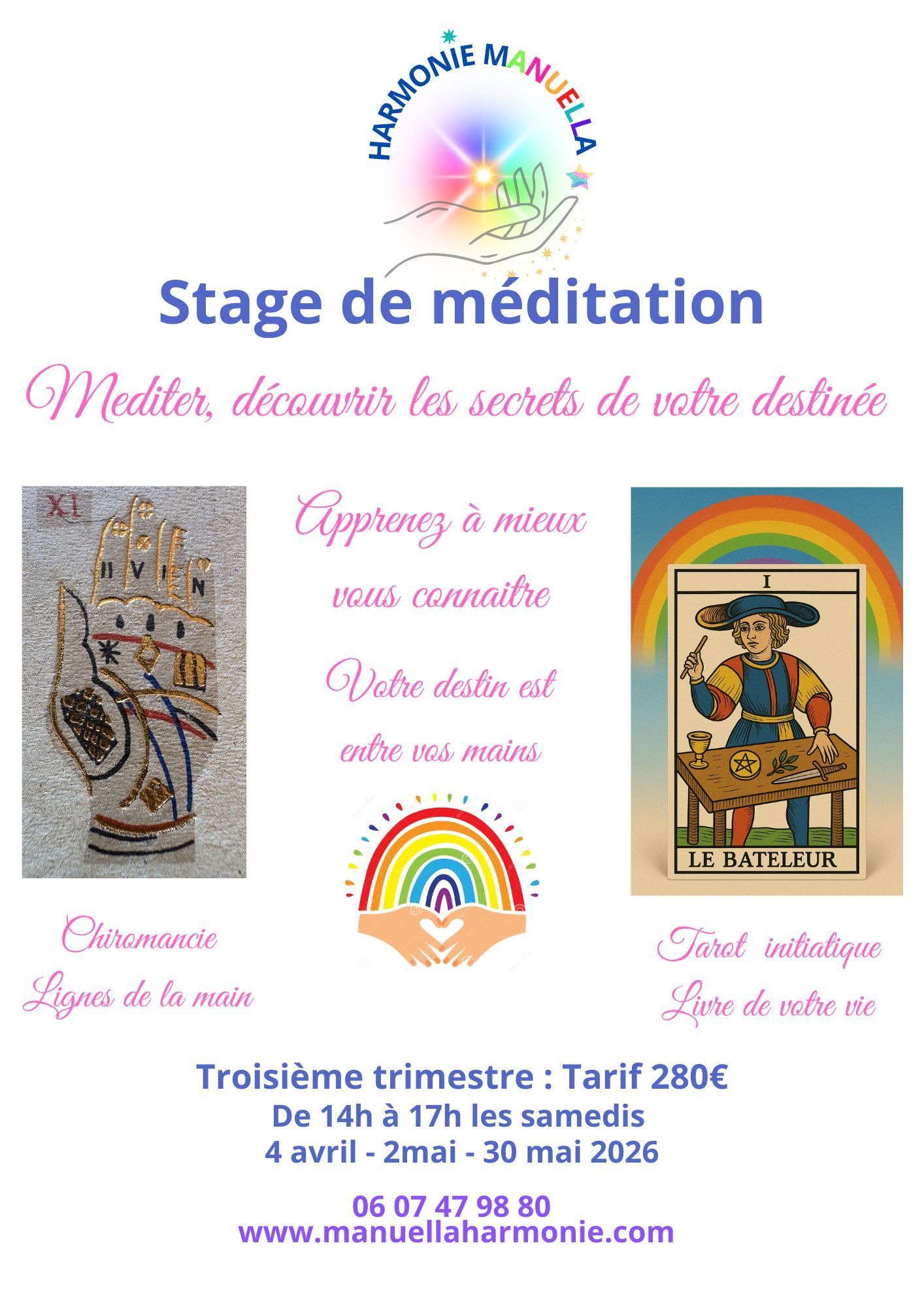 - La séance de méditation du samedi propose une découverte initiatique du tarot de Marseille.